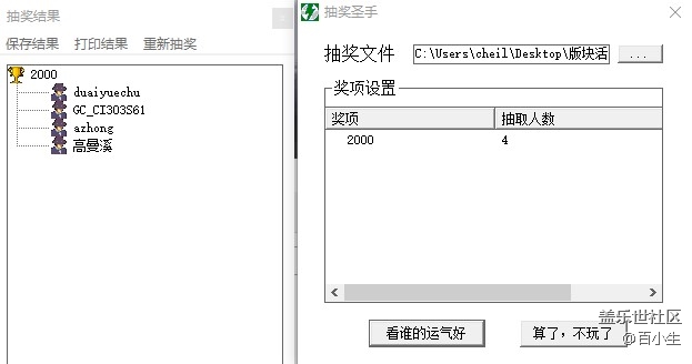 - 獲獎(jiǎng)名單公布1. 幸運(yùn)一等獎(jiǎng) 4名 三星Galaxy Buds Pro 無(wú)線耳機(jī) 2. 幸運(yùn)二等獎(jiǎng) 3名 三星移動(dòng)硬盤(pán) T5 3. 特別人氣獎(jiǎng) 1名 大疆無(wú)人機(jī) 1臺(tái)由于電話號(hào)碼不正確或空號(hào)無(wú)法取得聯(lián)系的獲獎(jiǎng)用戶(hù),請(qǐng)4月30日之前盡快與我聯(lián)系兌換活動(dòng)獎(jiǎng)品 ,逾期獲獎(jiǎng)結(jié)果作廢!抽獎(jiǎng)截圖4. 活動(dòng)分享轉(zhuǎn)發(fā)獎(jiǎng) 10名 100元京東卡1張抽獎(jiǎng)截圖非常感謝您對(duì)尊享匯活動(dòng)的支持!以后也請(qǐng)多多關(guān)注喔~~活動(dòng)2 有獎(jiǎng)分享活動(dòng)時(shí)間:2021年3月12日-4月11日將【三星Z Premier尊享匯】活動(dòng)鏈接分享至個(gè)人微博或微信朋友圈, 截圖回復(fù)至本活動(dòng)帖, 即可參與抽獎(jiǎng)?;顒?dòng)結(jié)束后,抽取10名幸運(yùn)用戶(hù),各獲得京東