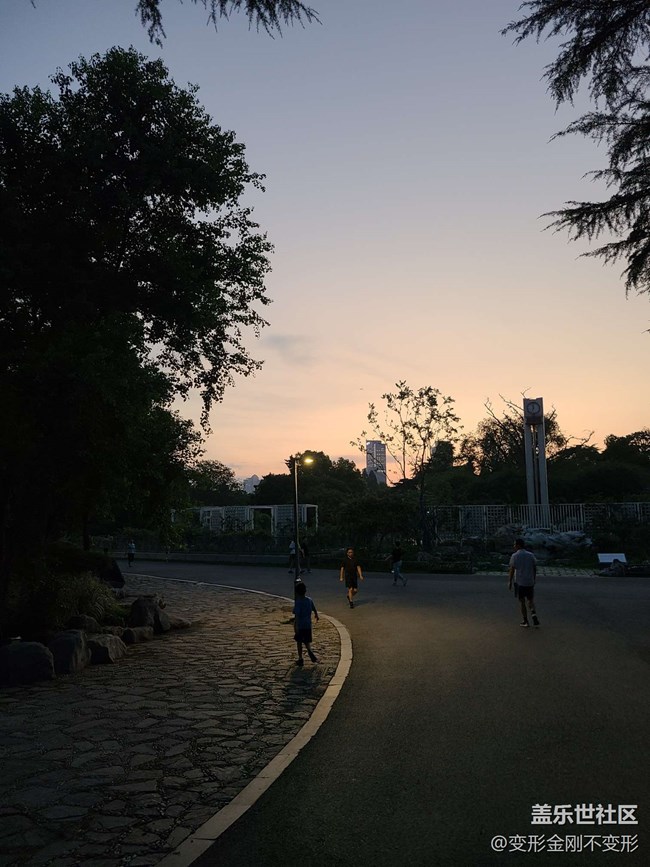 - 夜晚的公園里面人們一邊散步鍛煉,一邊欣賞夜景