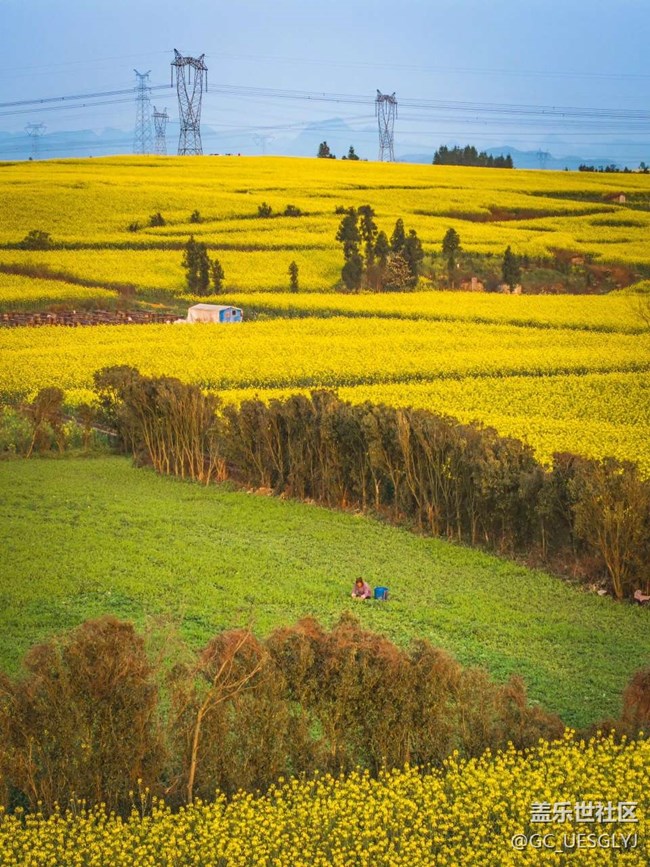 - 風(fēng)掠過(guò)層層疊疊的田壟,把整片山野都染成了流動(dòng)的金黃。油菜花鋪展成無(wú)邊的絨毯,從腳下一直漫向遠(yuǎn)山,在晴日里泛著暖融融的光。 蜿蜒的公路穿行在花海里,載著旅人奔赴春光;復(fù)古小火車慢悠悠地駛過(guò),汽笛聲驚起一陣花浪;騎摩托的人停在路邊,用鏡頭定格這漫山遍野的熱烈。田埂間有人低頭勞作,遠(yuǎn)處的村落與黛色山巒相映,連電線桿都成了這幅田園畫里溫柔的注腳。 春天從不是單薄的綠意,它藏在這鋪天蓋地的金黃里,藏在風(fēng)拂過(guò)花穗的沙沙聲里,藏在每一個(gè)愿意放慢腳步,與自然相擁的瞬間里。