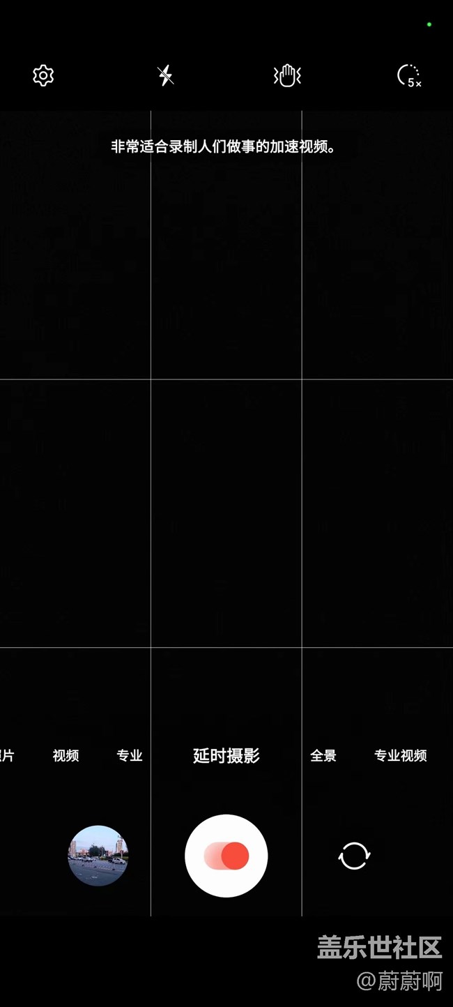 - 延時(shí)攝影的入門(mén)教學(xué)什么是延時(shí)攝影?延時(shí)攝影是一種將時(shí)間壓縮的拍攝技術(shù)。通常是一組照片,時(shí)間有可能是,幾個(gè)小時(shí)幾天,甚至是幾個(gè)月。能展現(xiàn)出物體慢慢發(fā)生變化的過(guò)程。延時(shí)攝影呢主要是應(yīng)用在城市風(fēng)光,比如說(shuō)街道的車(chē)水馬龍,自然風(fēng)光,比如說(shuō)日出日落啊,斗轉(zhuǎn)星移呀。建筑制造,記錄一座樓從地基到封頂?shù)倪^(guò)程。這一種就叫做延時(shí)攝影。拍攝對(duì)象所應(yīng)用的時(shí)間選擇延時(shí)攝影有一定的區(qū)別。像三星手機(jī)分為5倍,10倍,15倍30倍,還有60倍。這些倍速都有什么特殊的作用呢?下面我就給大家介紹一下。首先最低的5倍。大家可以看到5倍的話。適用于人們做事情的。延時(shí)記錄。比如說(shuō)可以記錄在家里整理家務(wù)或者是日常的工作學(xué)習(xí)。這些可以用5