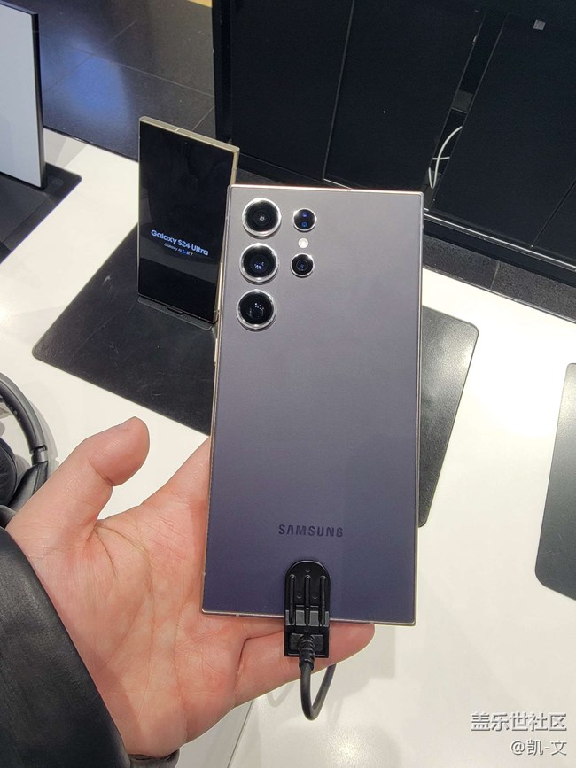 - 進入門店,映入眼簾的就是Z Flip系列的手機殼,設計都蠻有味的其次比較吸引我注意的就是Tab S9 Ultra了,這塊碩大的OLED屏雀食給了我很大的震撼,色彩、刷新率都不是我手上這塊tab s7的LCD能比的。鍵盤手感依舊在線,就是鍵程偏短。S24 Ultra這款配色真的很不戳,略微偏香檳色的灰色很有奢華感,配合上鈦合金邊框。小S24這款配色一樣好看。麻雀雖小五臟俱全,該有的配置一個都沒落下,個人更喜歡小屏的S24。線下活動,奶茶肯定少不了??還是一如既往的大氣,直接請喜茶自選線下活動有一個小游戲環(huán)節(jié),3人一組,兩個人描述壁紙(都是三星每一代旗艦的壁紙),另一個人猜,我們組憑借1分32秒的