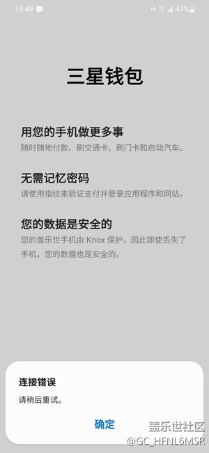 三星錢包一直提示連接錯誤