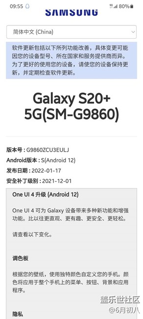 S20+不等4.0推送了。