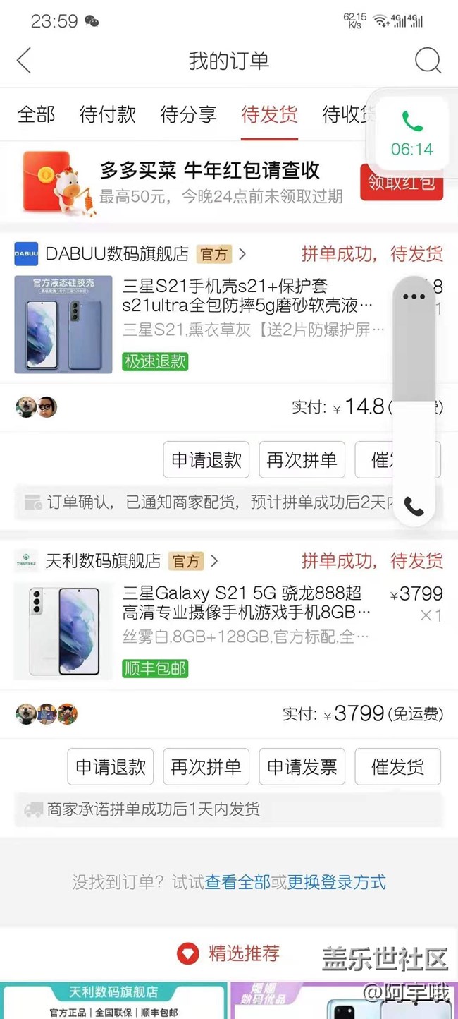 拼夕夕買的s21