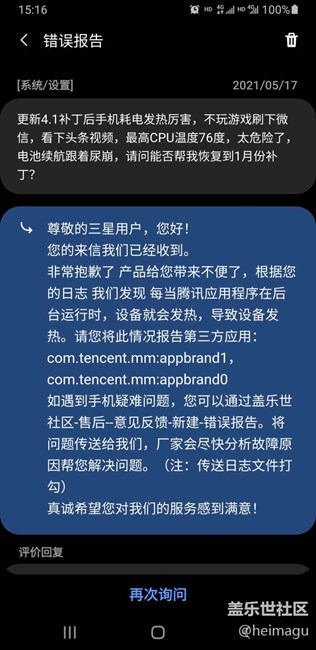 客服請進(jìn),NOTE9更新6.1補(bǔ)丁后手機(jī)又發(fā)燙到78度了