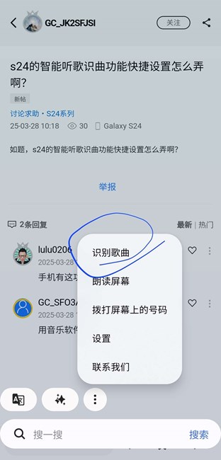 s24的智能聽歌識曲功能快捷設(shè)置怎么弄???
