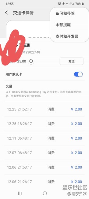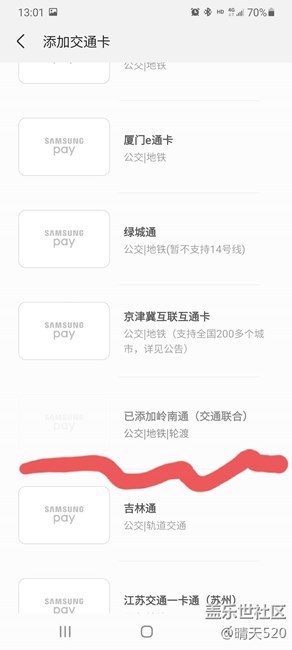 三星pay 坐公交刷交通卡不識別