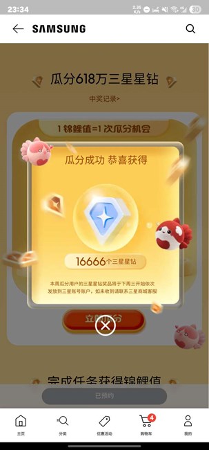 三星商城里有個618瓜分星鉆活動你們參加了嗎