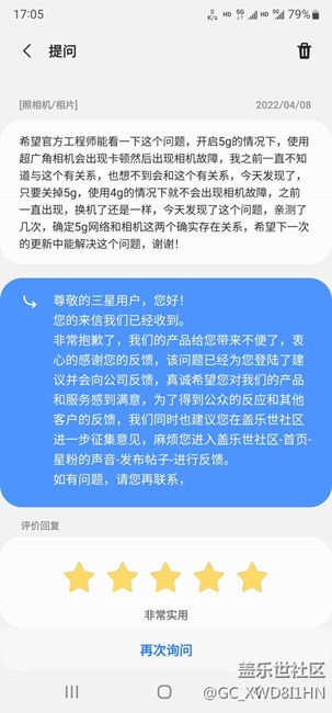 三星 S22Ultra 開啟廣角鏡頭 提示相機故障