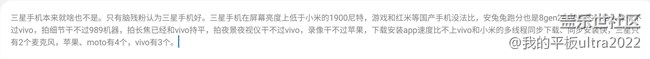 三星手機(jī)本來(lái)就啥也不是。三星手機(jī)在屏幕亮度上低于小米的1900尼特,游戲和紅米等國(guó)產(chǎn)手機(jī)沒(méi)法比,安兔兔跑分也是8gen2中墊底的,拍人像干不過(guò)vivo,拍細(xì)節(jié)干不過(guò)989機(jī)器,拍長(zhǎng)焦已經(jīng)和vivo持平,拍夜景夜視儀干不過(guò)vivo,錄像干不過(guò)蘋(píng)果,下載安裝app速度比不上vivo和小米的多線程同步下載、同步安裝快,三星只有2個(gè)麥克風(fēng),蘋(píng)果、moto有4個(gè),vivo有3個(gè)。