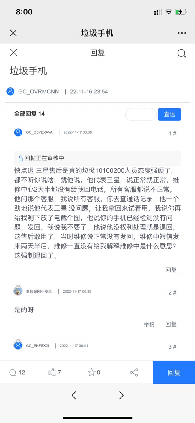 三星的處理人員就是他們說啥就是啥,客服復(fù)讀機啥都不給你解決