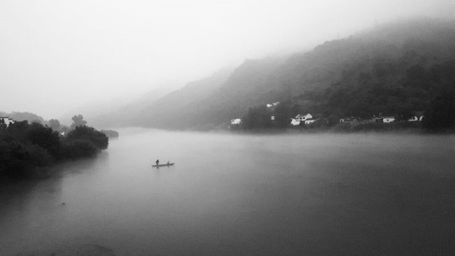 宣城桃花潭的晚霞與晨霧