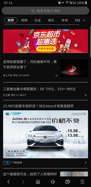 三星瀏覽器突然變成夜晚模式了