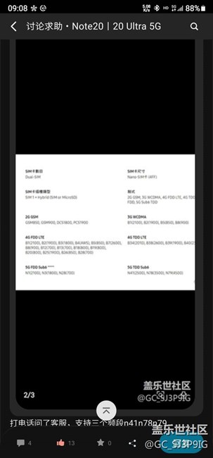 三星N20U是否支持5G的n28頻段?