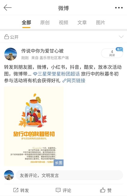 已開獎旅行中的秋暮冬初 參與活動將有機(jī)會獲得好禮