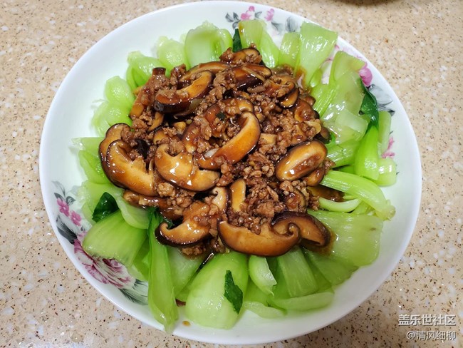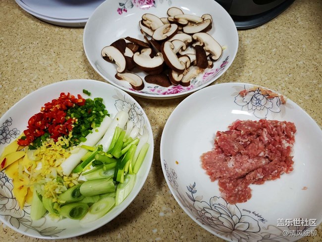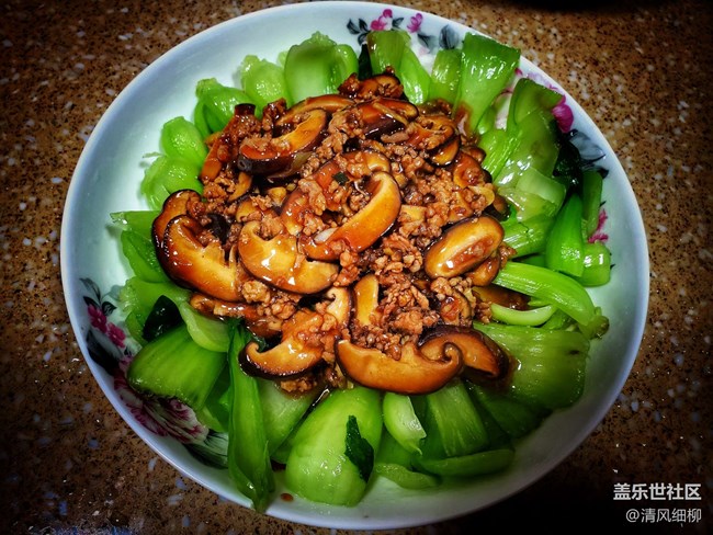 食材:小油菜(我們四川叫瓢羹兒菜)300——500克、豬肉末100克,香菇八朵以上