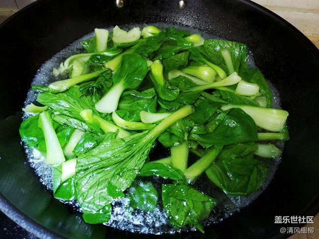 開水鍋里加點(diǎn)鹽、再滴幾滴油,分別倒入小油菜、香菇焯水一分鐘撈出。這樣做對所有素材都適用,目的是為了素菜清脆不變色,又有底味。