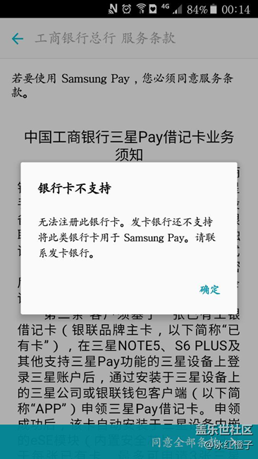 移動支付的時代到來,samsungpay給我們帶來了驚喜和便利。samsungpay一上線,小伙伴們都迫不及待的升級手機和注冊,搶先體驗。我也不例外,卻在注冊工商銀行借記卡時遇到了障礙,多次注冊以至于達到嘗試次數(shù)上限,還是失敗。打電話問95588客服,客服說,工商銀行支持所有銀行卡注冊,要不你到柜臺辦理。昨天,到營業(yè)廳咨詢大廳mm,mm一臉茫然,去詢問同事,然后對我說沒有這個業(yè)務,當時我都醉了!無奈之下,我打開手機給她看,一步一步注冊直到失敗。然后她說是卡的問題,讓我換一張卡,但是要換號。我說換號太麻煩……和她理論了一番,最后讓我留下卡和身份證復印件,她移交給上級科技部解決,今天電話回訪我??墒墙裉焓裁措娫捄拖⒍紱]有,我也在一直等待中……