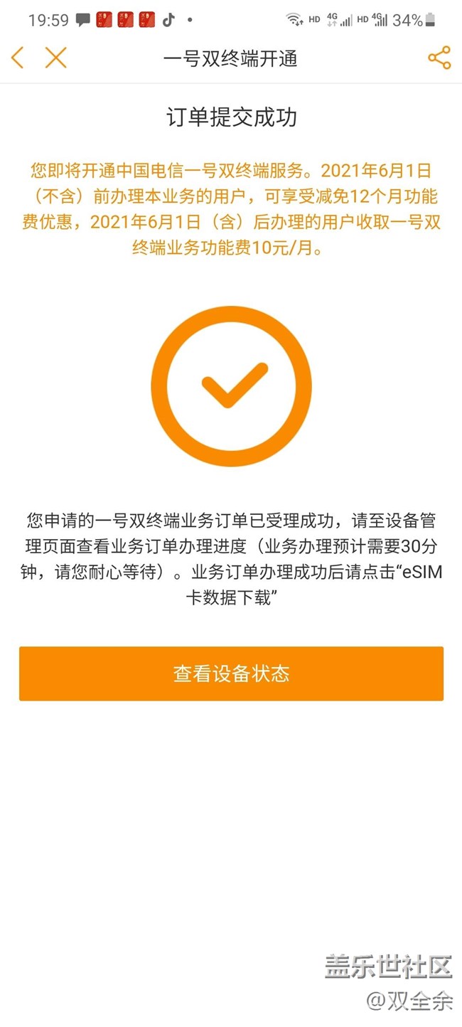 帖子標(biāo)題: 電信esim一號雙終端有好像全國開通了