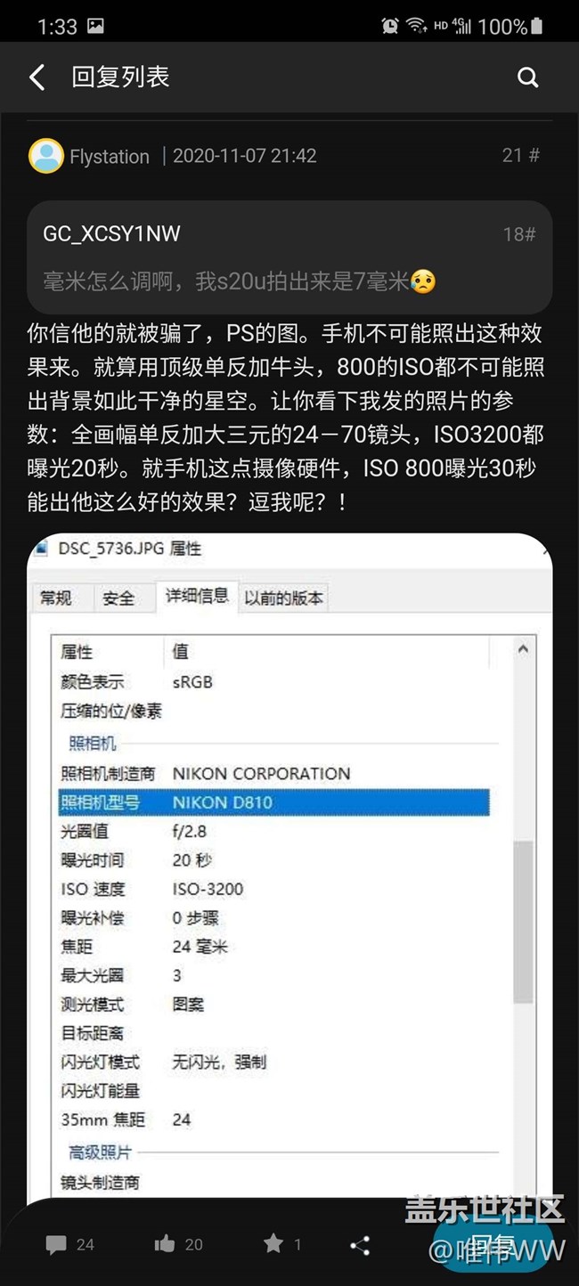 圖后面我都會再截有參數(shù)的圖,最后附上那位說是相機(jī)的回復(fù)截