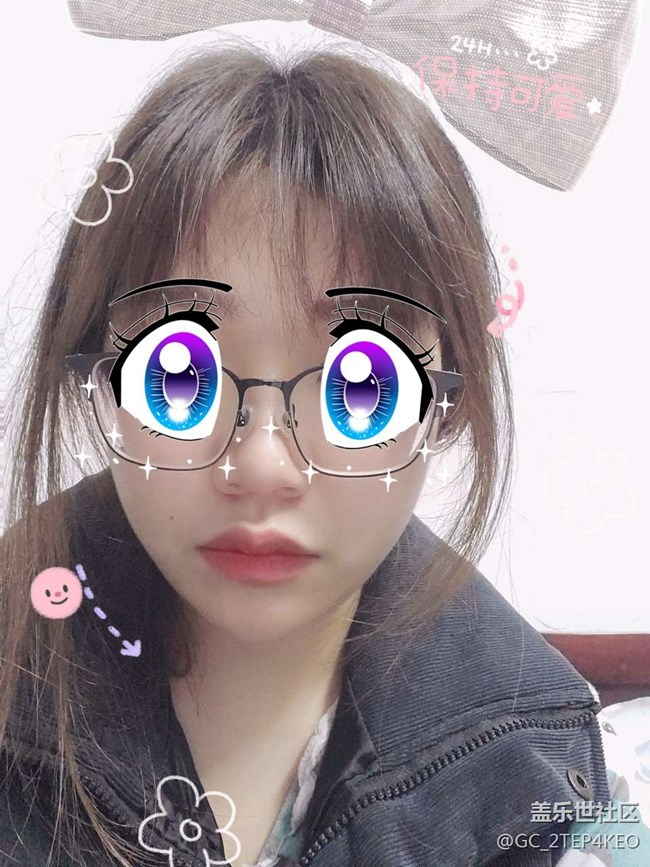 蝴蝶結(jié)的貼紙都飄離頭頂了