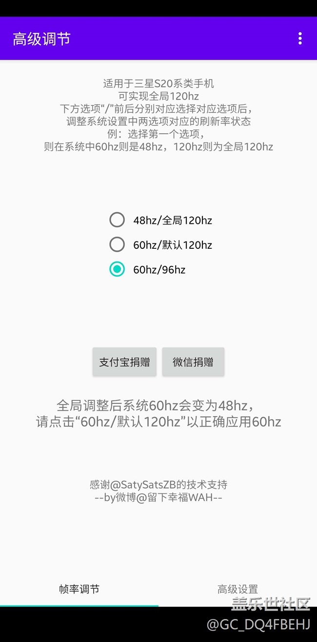 )個人鎖定了96感覺高刷有了。也省電了最后配合玄學app使用 qboost