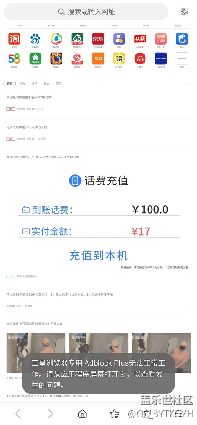 打開三星瀏覽器,提示這個,什么意思?怎么解決,各位大神?
