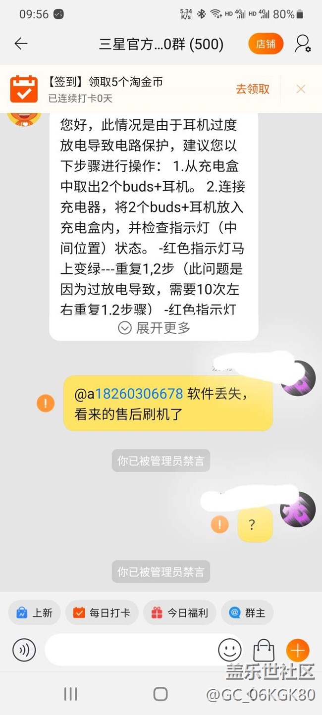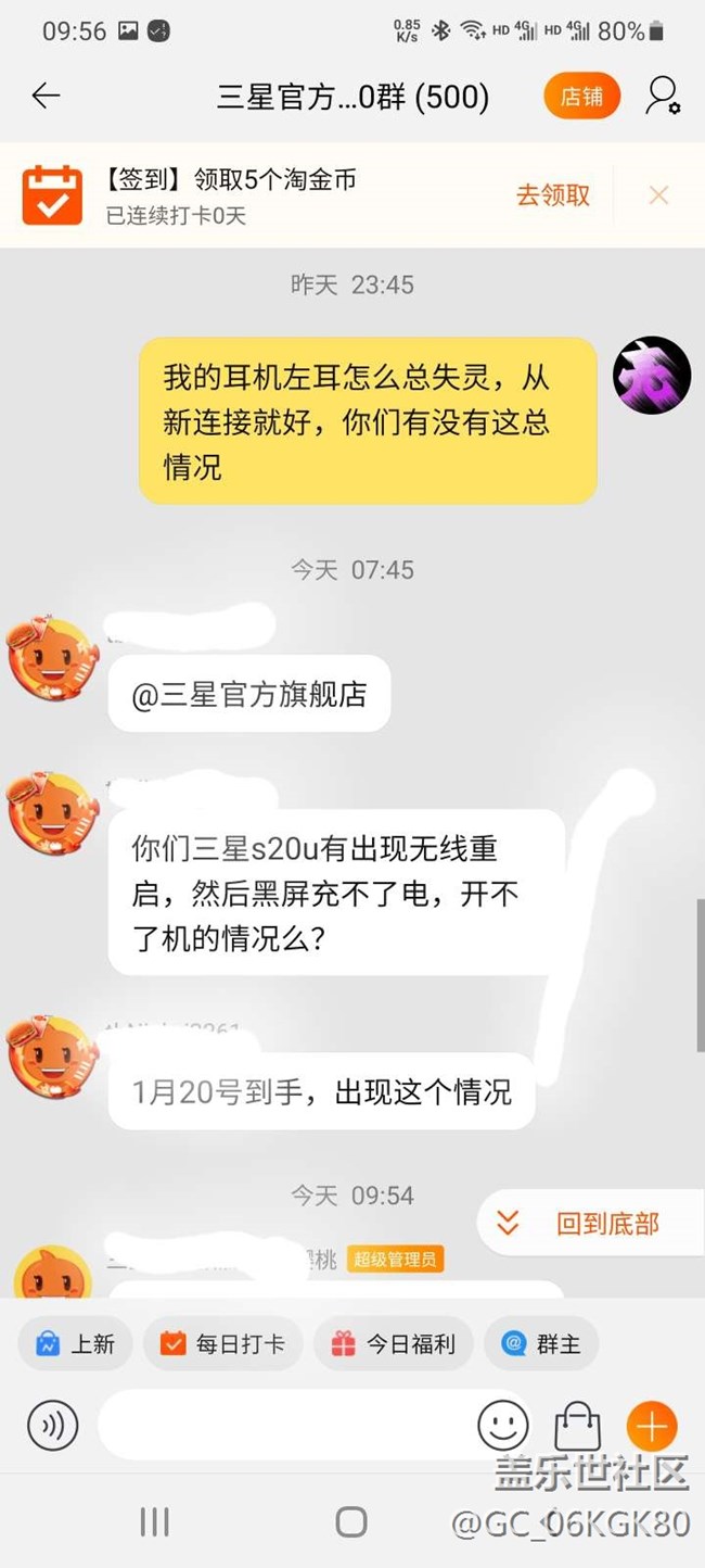 作為一個(gè)用了十多年的三星忠實(shí)鐵粉的我今天真的失望了!本人在28號(hào)下單預(yù)約了一臺(tái)s21u手機(jī),31號(hào)到貨后加了他們的旗艦店群,在2月5號(hào)發(fā)現(xiàn)贈(zèng)送的三星藍(lán)牙耳機(jī)左耳時(shí)斷時(shí)連,我就在群里問(wèn)了一下,沒(méi)想到讓我氣憤的事情發(fā)生了我就是在群里問(wèn)了一下你就禁言?你這群是做什么用的?不是用戶交流群?如果不是交流群你讓我們?nèi)肴鹤鍪裁??就這種方式對(duì)待消費(fèi)者?三星產(chǎn)品沒(méi)得說(shuō),非常好用,但是這種方式的去對(duì)待消費(fèi)者真不知道還能走多遠(yuǎn),奉勸想買手機(jī)的星粉們,還是去京東吧,如果在天貓三星旗艦店買,客服分分鐘鐘教你做人!