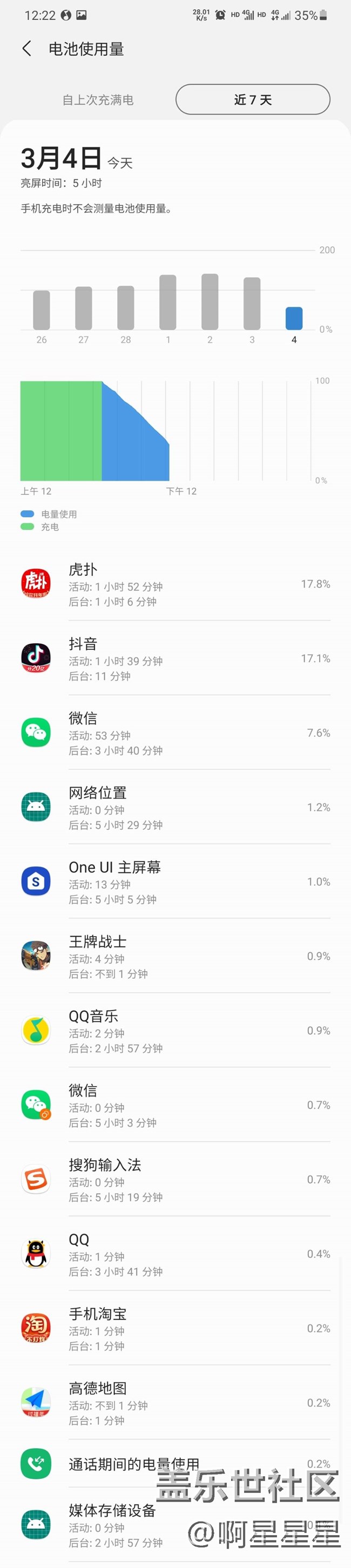 三星s21u這續(xù)航還真不錯(cuò)啊。亮屏5小時(shí)還能剩個(gè)35%多 圖片