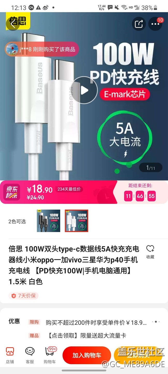 帖子名稱 請(qǐng)問這款倍思Type-C線能替代原裝線給s20快充嗎?