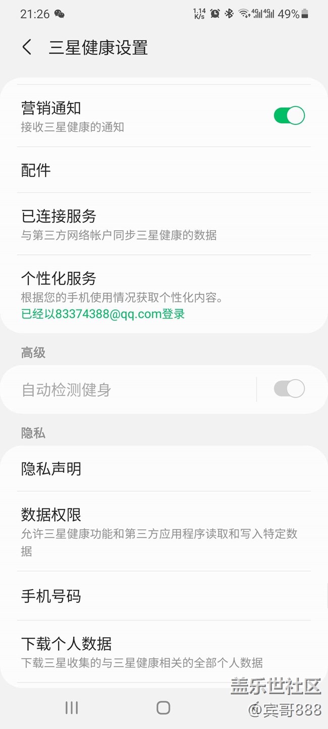 三星健康里高級里的自動檢測健身怎么關(guān)不了啊 圖片