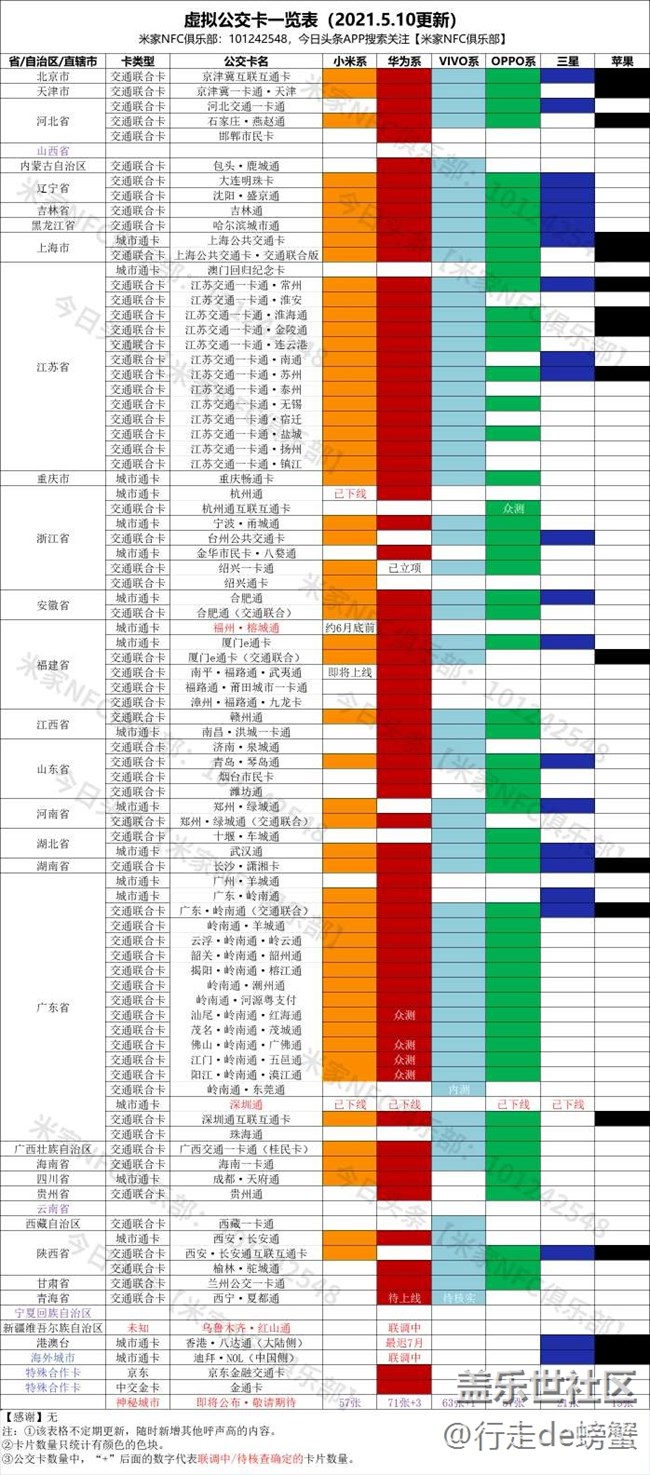 2021年快過半了,一張新卡沒上,綠城通,廈門卡,合肥通不升級(jí)交通聯(lián)合卡不說還和上海紫卡互斥,上海紫卡沒升級(jí)交通聯(lián)合卡不說還不能移卡,藍(lán)廠已經(jīng)放開開卡數(shù)量,最多可以開芯片最大容量(8張),綠廠最多也可以開5張,三星還限制在3張,門卡交通卡只能默認(rèn)一張,無法智能刷卡,現(xiàn)在已經(jīng)2021年了,可惜交通卡體驗(yàn)還停留在2017年。雖說國(guó)內(nèi)市場(chǎng)份額是other,但至少你計(jì)劃上哪些交通卡,哪些在內(nèi)測(cè),哪些不可能上,給用戶一個(gè)官方說明好嗎?要是實(shí)在自己做不了就外包出去吧?;松先f塊錢買你三星結(jié)果就這體驗(yàn)?附圖三星,蘋果,小米,華為,oppo,vivo各家交通卡配適情況,三星你還覺得你的交通卡比較多嗎?還有不要說開個(gè)交通聯(lián)合卡都能刷,不是所??城市都給異地卡享受本地優(yōu)惠的