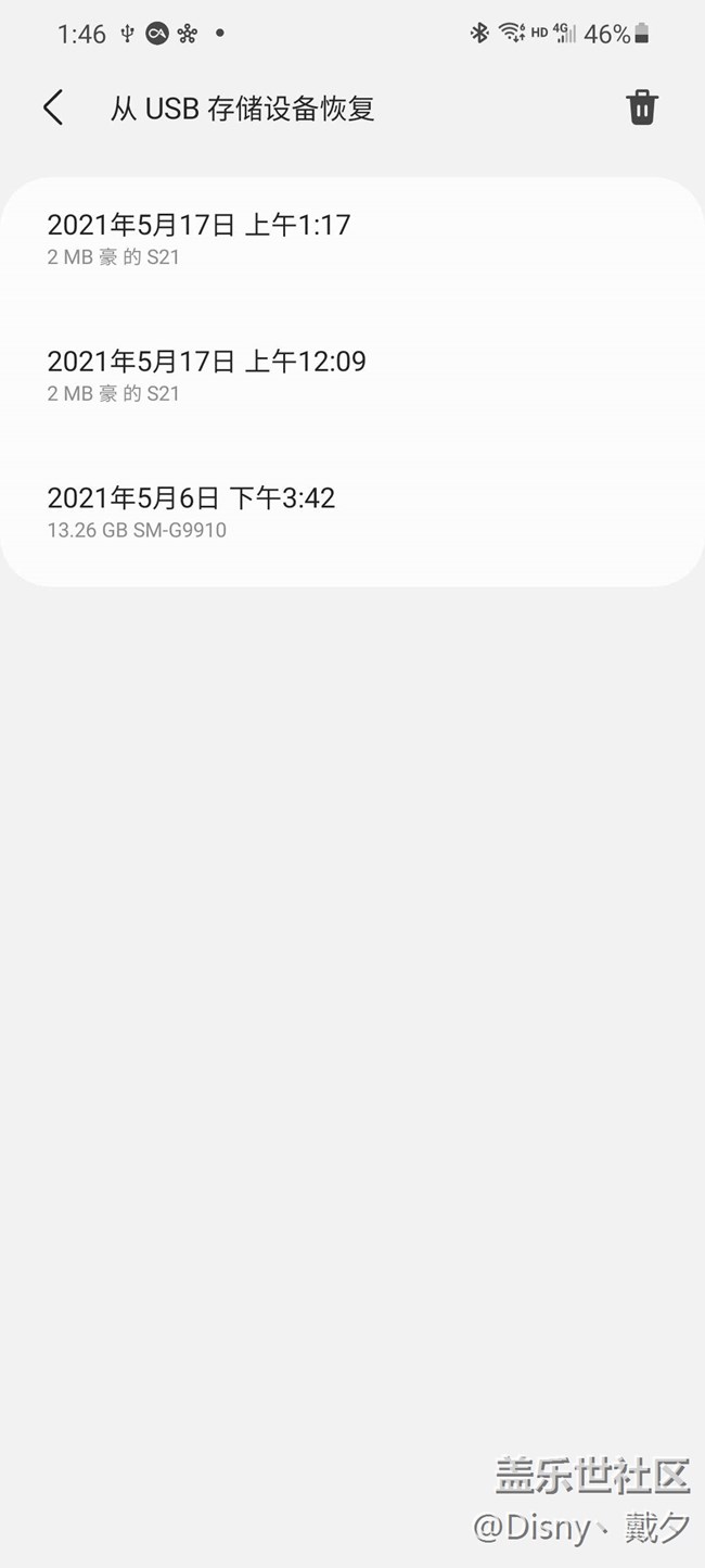 之前發(fā)帖6號(hào)發(fā)現(xiàn)手機(jī)網(wǎng)絡(luò)有問(wèn)題,送去售后,然后用s換機(jī)助手把手機(jī)數(shù)據(jù)備份到u盤,售后檢修后,確定主板有問(wèn)題,更換主板,今天剛拿回來(lái)。插上u盤,這下主板換了識(shí)別成另一臺(tái)手機(jī),要密碼了???我試了三星賬號(hào)密碼以及我常用的所有長(zhǎng)短密碼都不對(duì),這怎么破啊,我從s9開始保存的照片歌曲,一部一部手機(jī)轉(zhuǎn)移保存下來(lái)的,因?yàn)槿窃葡鄡?cè)要關(guān)閉了,我就沒同步了