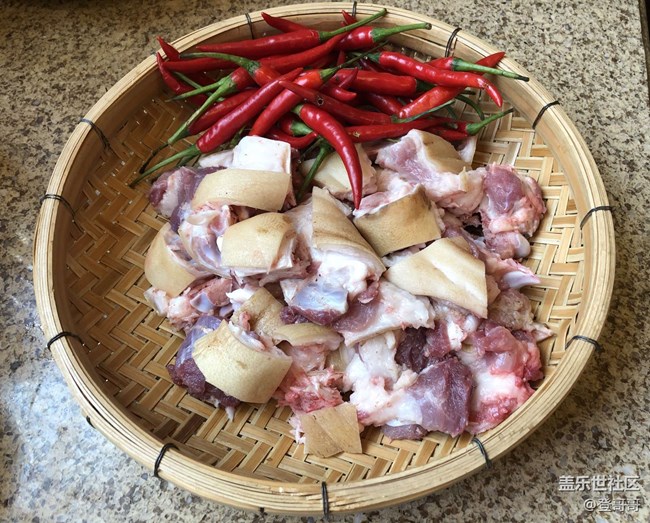 1、豬腳砍2-3厘米大小、放鍋里加入水進(jìn)行撩水后洗干凈。