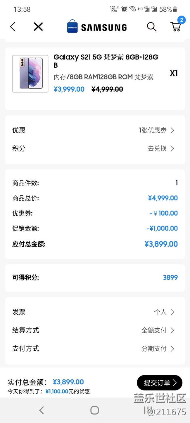 今天三星網上商城直播間跳水1000,外加優(yōu)惠券100塊,入手3899,支持花唄免息分期付款,買早了。