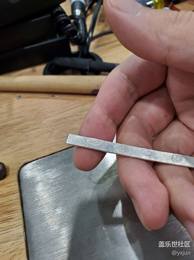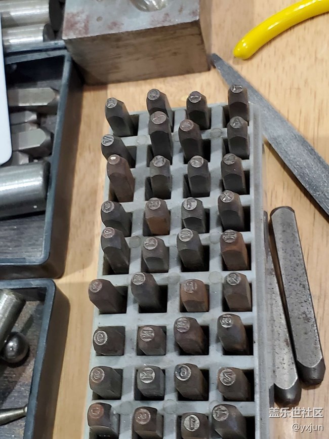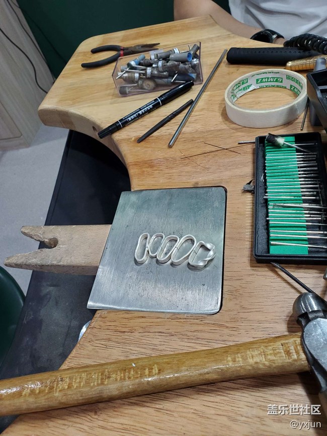 中間記好筆標(biāo)記的是雕刻區(qū),把自己想刻的字母或者圖案預(yù)留好位置,然后借住錘子印上去,我兩面分別選擇了字母和圖案。