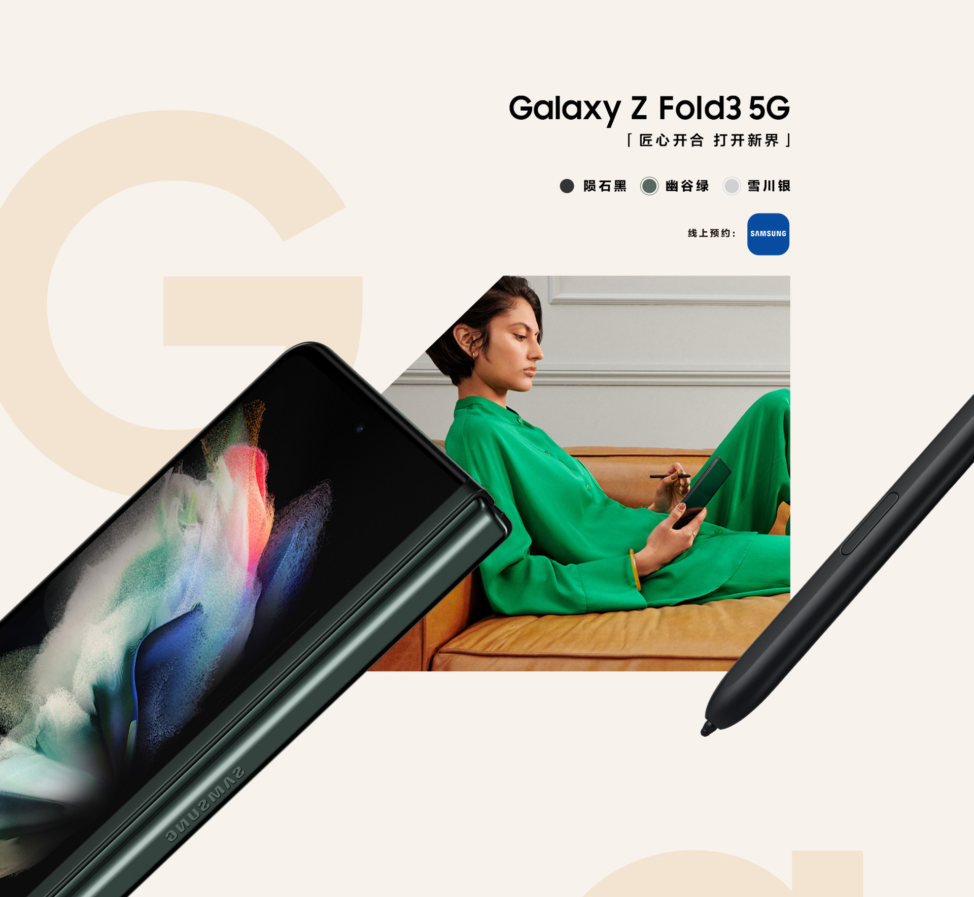 三星Galaxy Z Fold3 5G擁有隕石黑、雪川銀、幽谷綠三種配色,你喜歡哪個顏色呢?