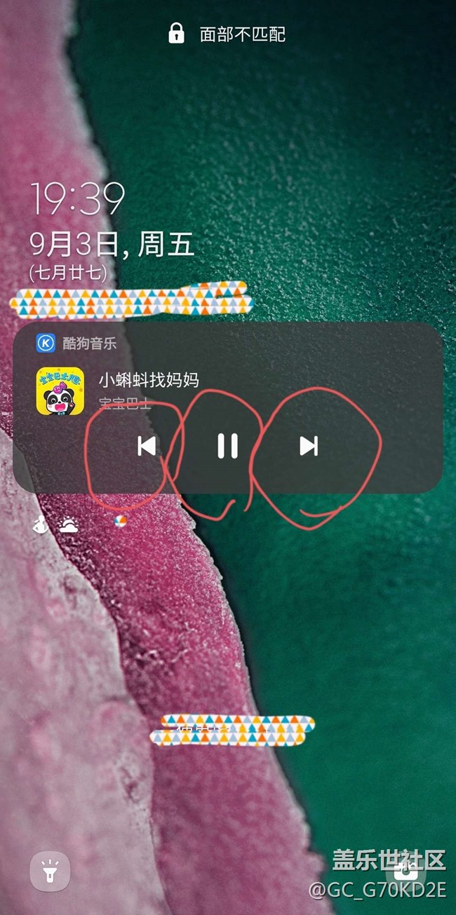 在鎖屏界面下,酷狗音樂的圖標(biāo)(上一首)、(下一首)、(暫停)這三個(gè)圖標(biāo)操作沒有任何反應(yīng)。 沒辦法只能在通知欄或者軟件界面關(guān)。