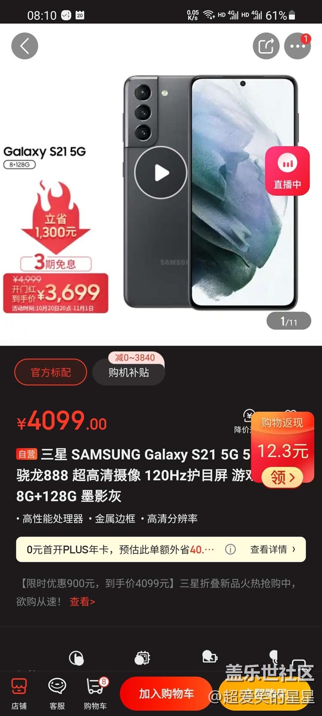 都說(shuō)三星手機(jī)掉電和降價(jià)一樣快,這不臨近月底,即將步入11月份,11月份也就意味著雙十一的到來(lái),于是三星s21在十月底先來(lái)一波降價(jià)!不標(biāo)注價(jià)保雙十一哦,說(shuō)明了什么???