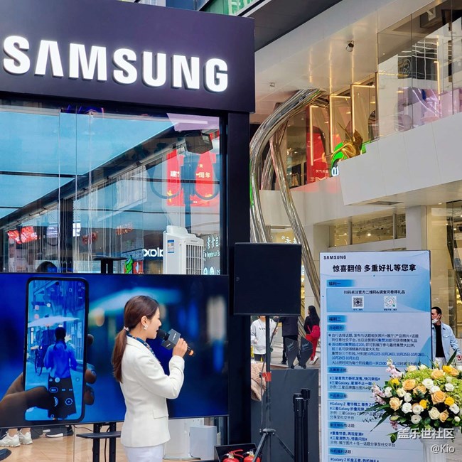 這次快閃店的布置也非常三星風(fēng)格,現(xiàn)場(chǎng)還有漂亮的小姐姐和主持人坐鎮(zhèn) ??