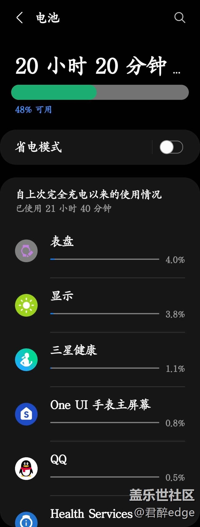 先看看老版本的續(xù)航,2天2夜應(yīng)該沒(méi)有問(wèn)題,所有功能基本都開(kāi)了,晚上23點(diǎn)到早上6點(diǎn)是就寢模式,電池比之前的watch3少了1天使用時(shí)間,挺滿(mǎn)意,希望新版繼續(xù)優(yōu)化。