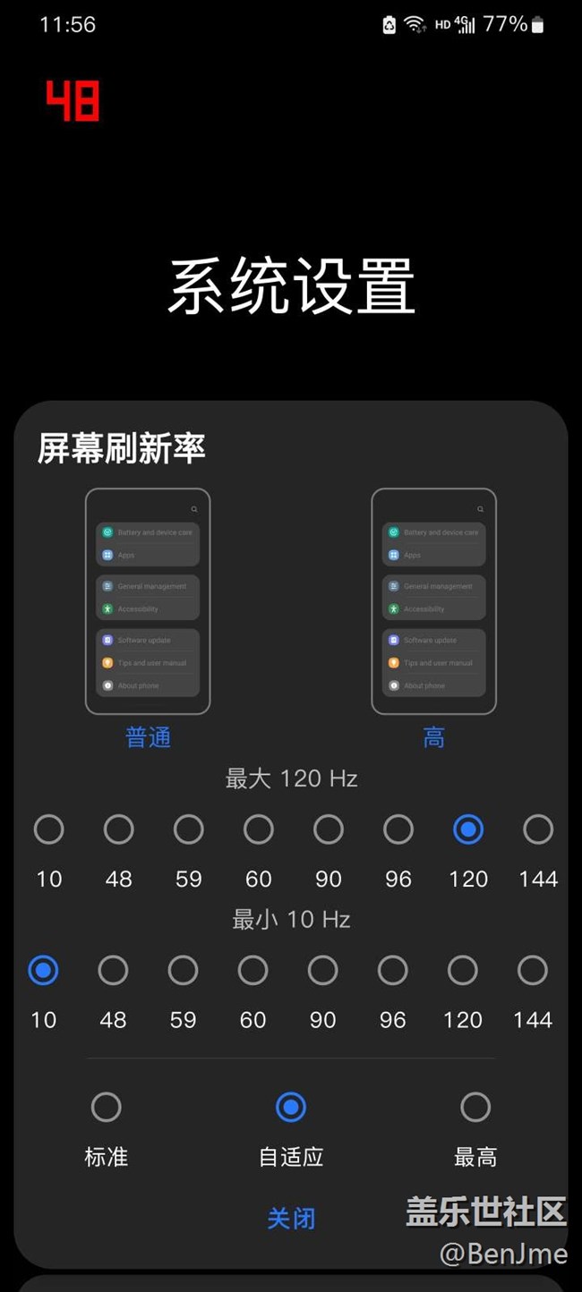 帖子名稱 OneUI4.0 卡省電模式+自適應120