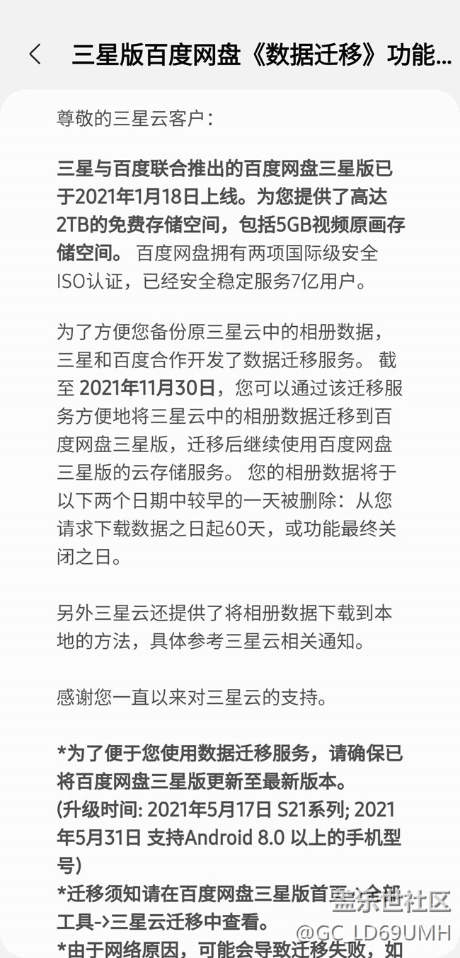 通知說已備份數(shù)據(jù)遷移到百度云三星版,這咋回事兒,太突然了