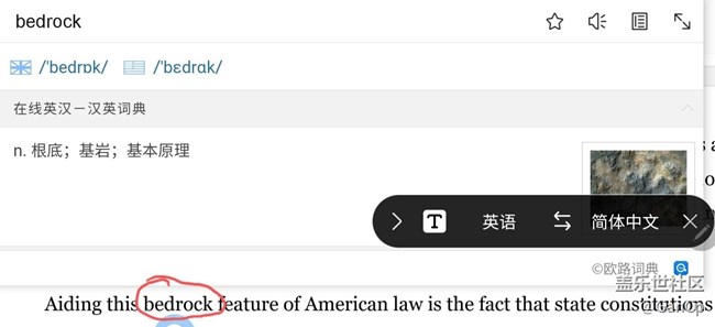 首先懸停翻譯功能很實(shí)用,但是有一些非常影響體驗(yàn)的地方,但是對于單詞的翻譯不夠完整!這一點(diǎn)非常關(guān)鍵,如果連一個完整的翻譯都給不全,那么很可能導(dǎo)致用戶對整個語句的翻譯錯誤。請官方工作人員看下圖,第三方軟件對bedrock一次有三個解釋,而s pen對此卻只有基巖一種解釋,我想這三種解釋還是有一定的區(qū)別的吧。還有