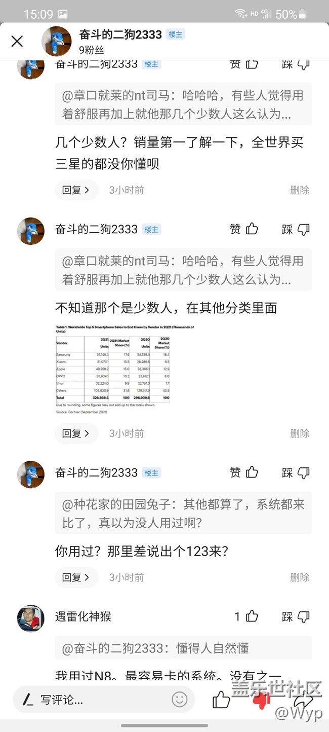 今天在頭條上評(píng)論了一下s21u比某機(jī)強(qiáng),被人噴了一天 圖片