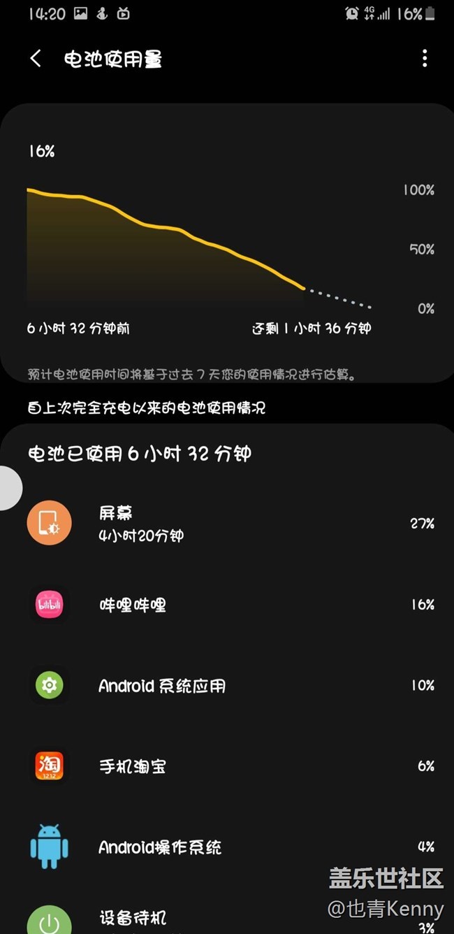 剛剛一直刷B站到上班想起來沒睡覺也一直沒充電,還有16%的電。