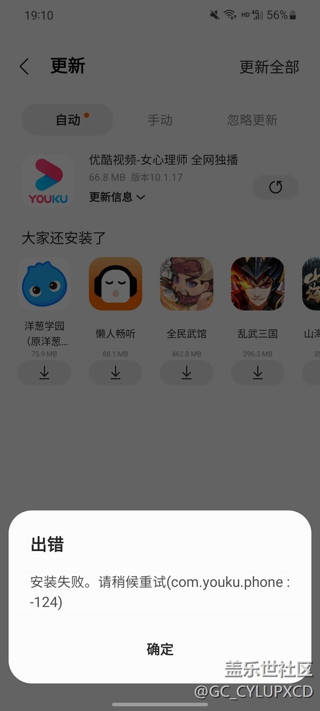 優(yōu)酷視頻一直更新安裝失敗。 圖片