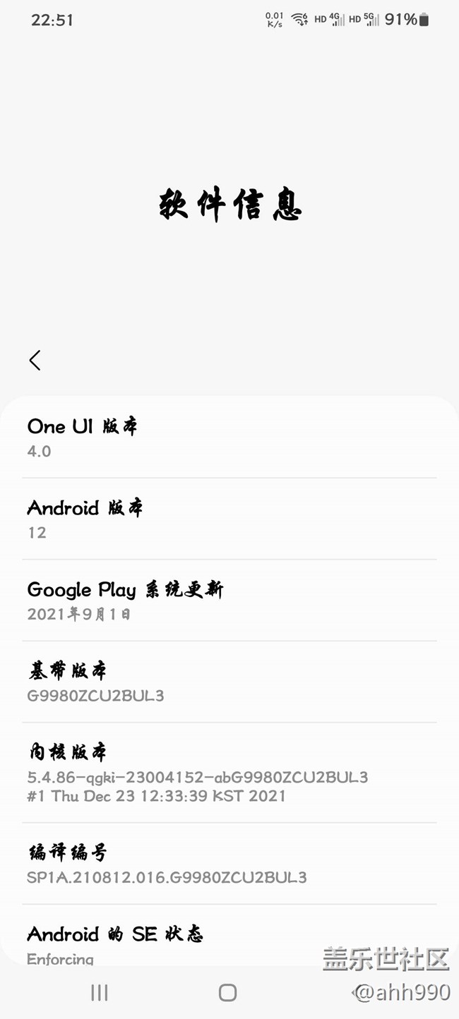 三星S21U國行正式收到安卓12官方推送更新 圖片