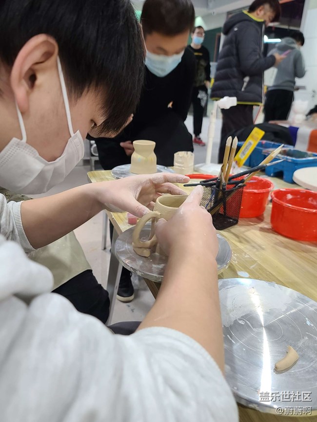 不得不說制作陶器是這些活動里面任務(wù)最艱巨的一個,上手難度最高的一個。可以看到這位小哥,正在努力的讓自己的陶器做出一個基本的模型。我問過這位小哥,他說他要制作一個杯子。