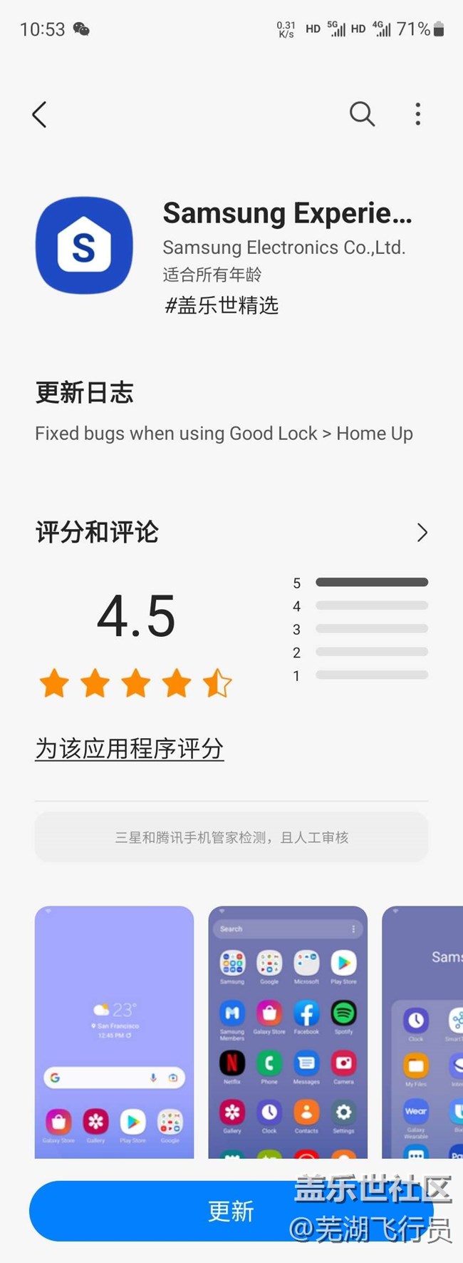 早上已經(jīng)推送了主屏幕的更新,看來不是good lock的問題,是三星主屏幕的BUG,大家更新這個(gè)主屏幕程序,homeup文件夾消失的問題即可解決。